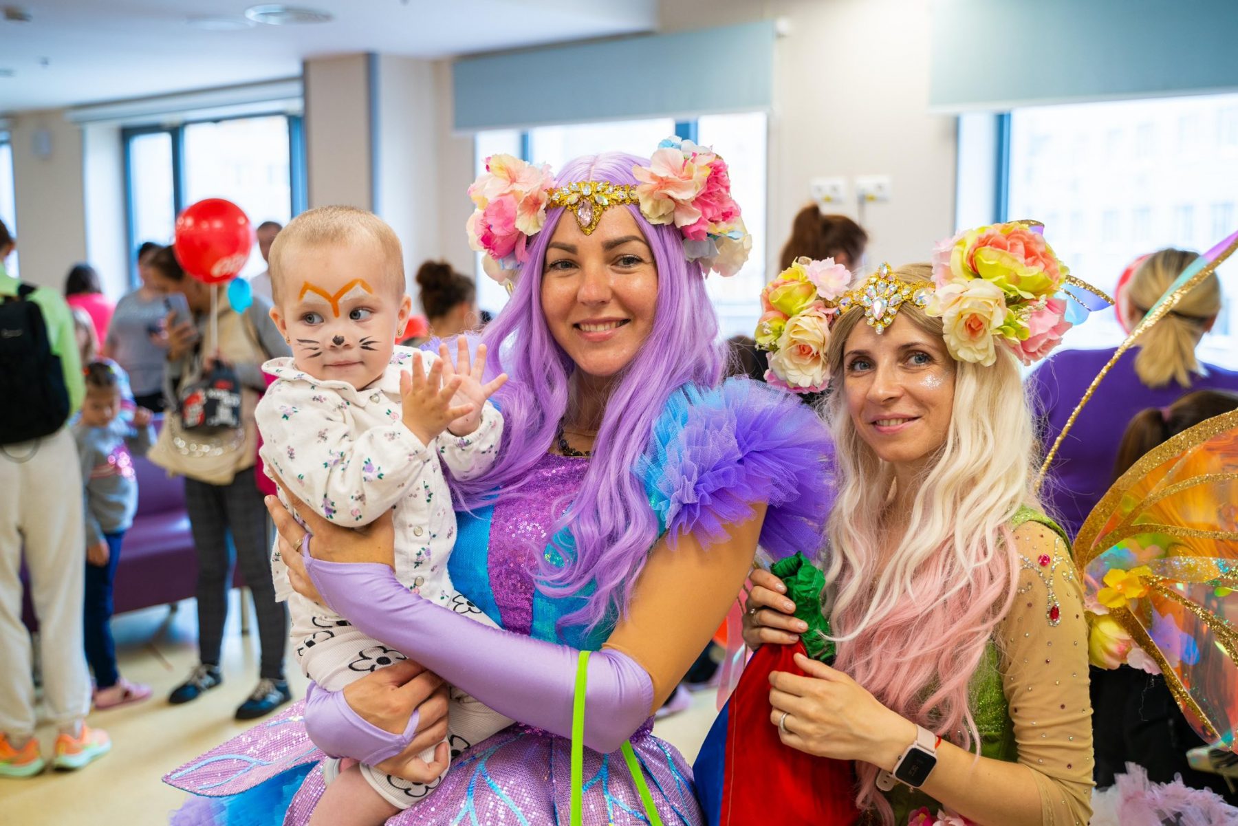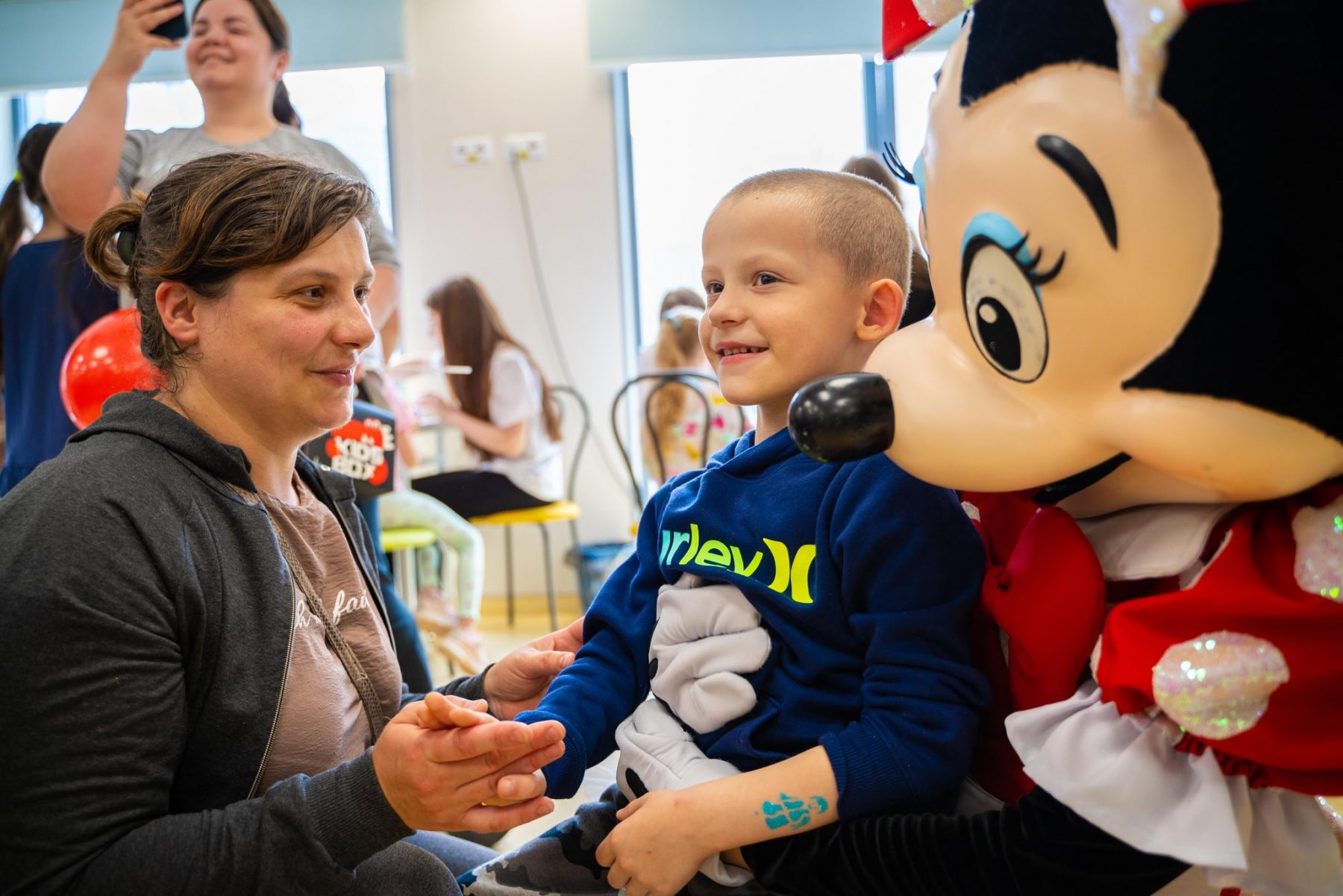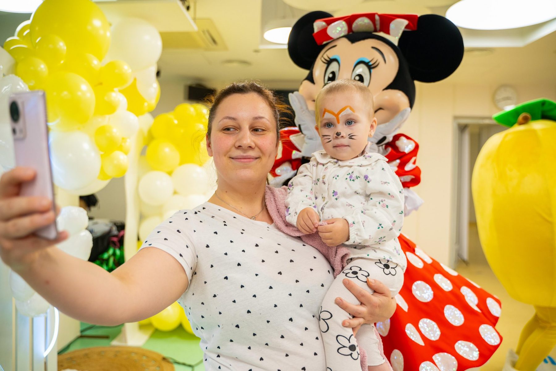 Для тих пацієнтів, які не змогли бути на локації, аніматори завітали до палат із кульками, смаколиками та гарним настроєм.