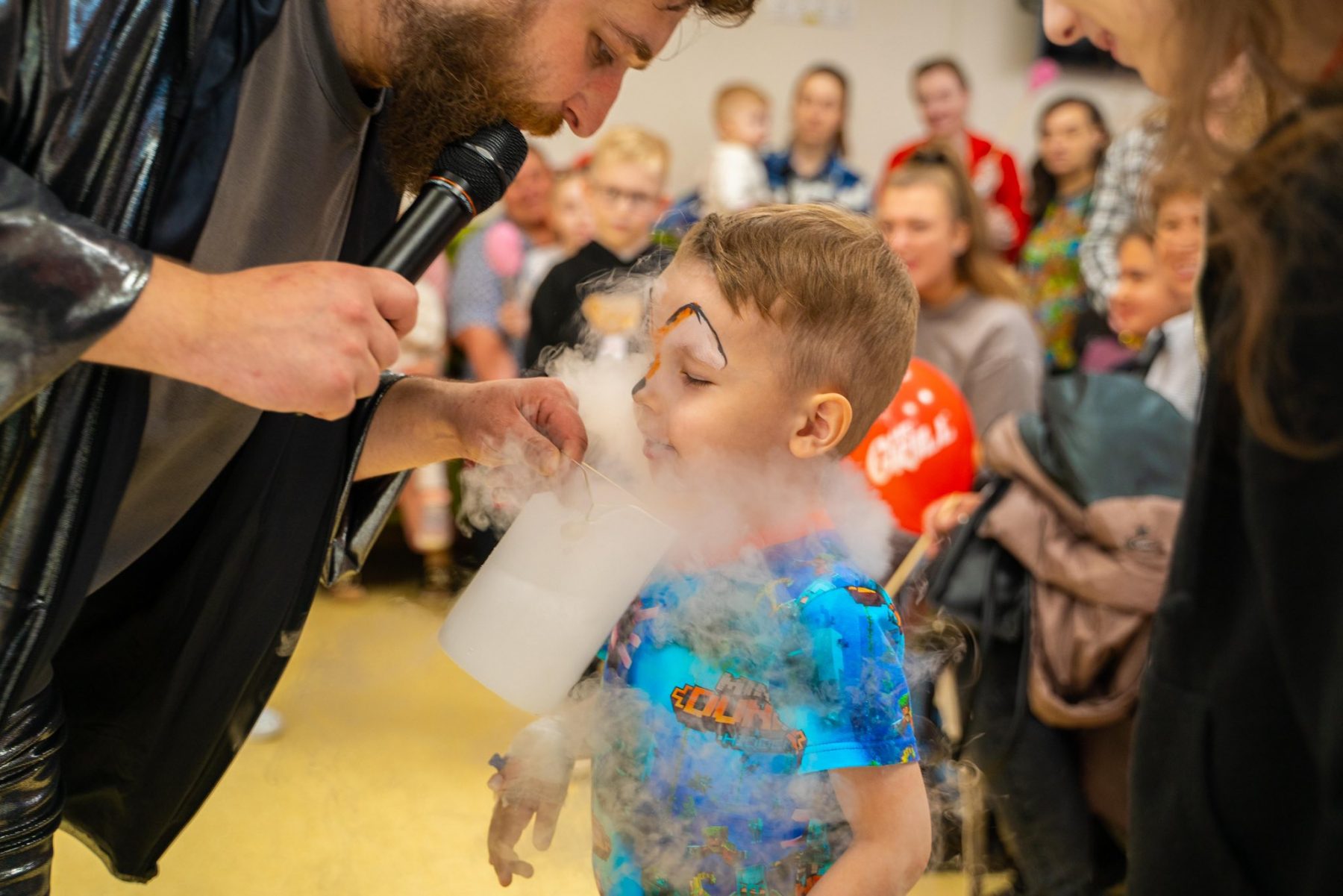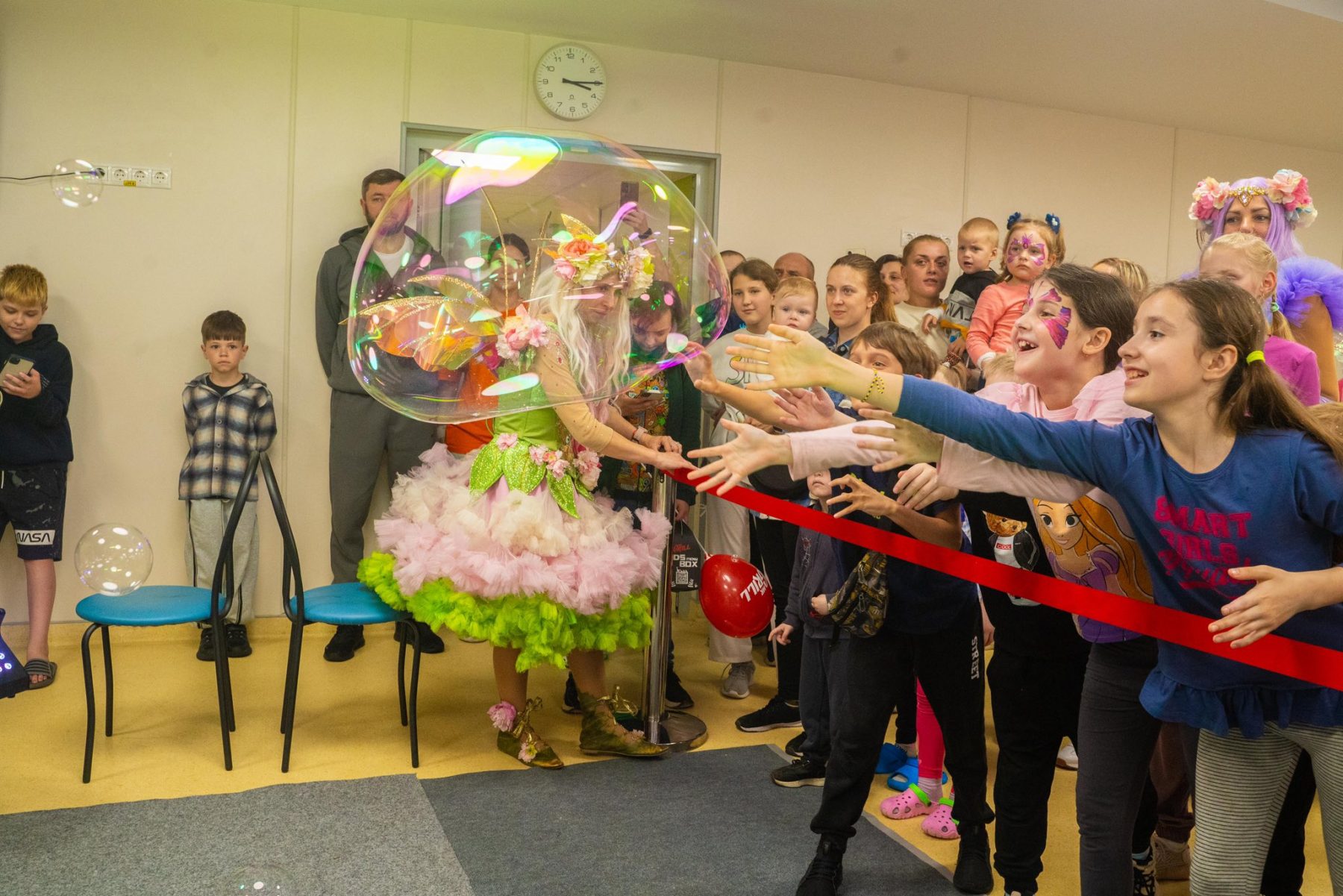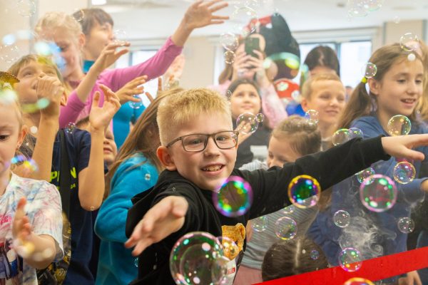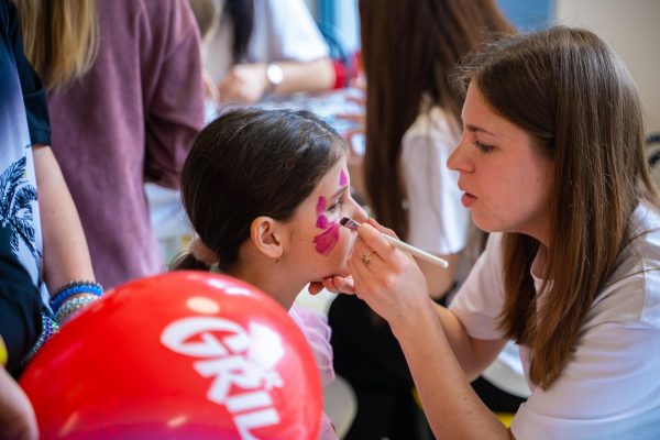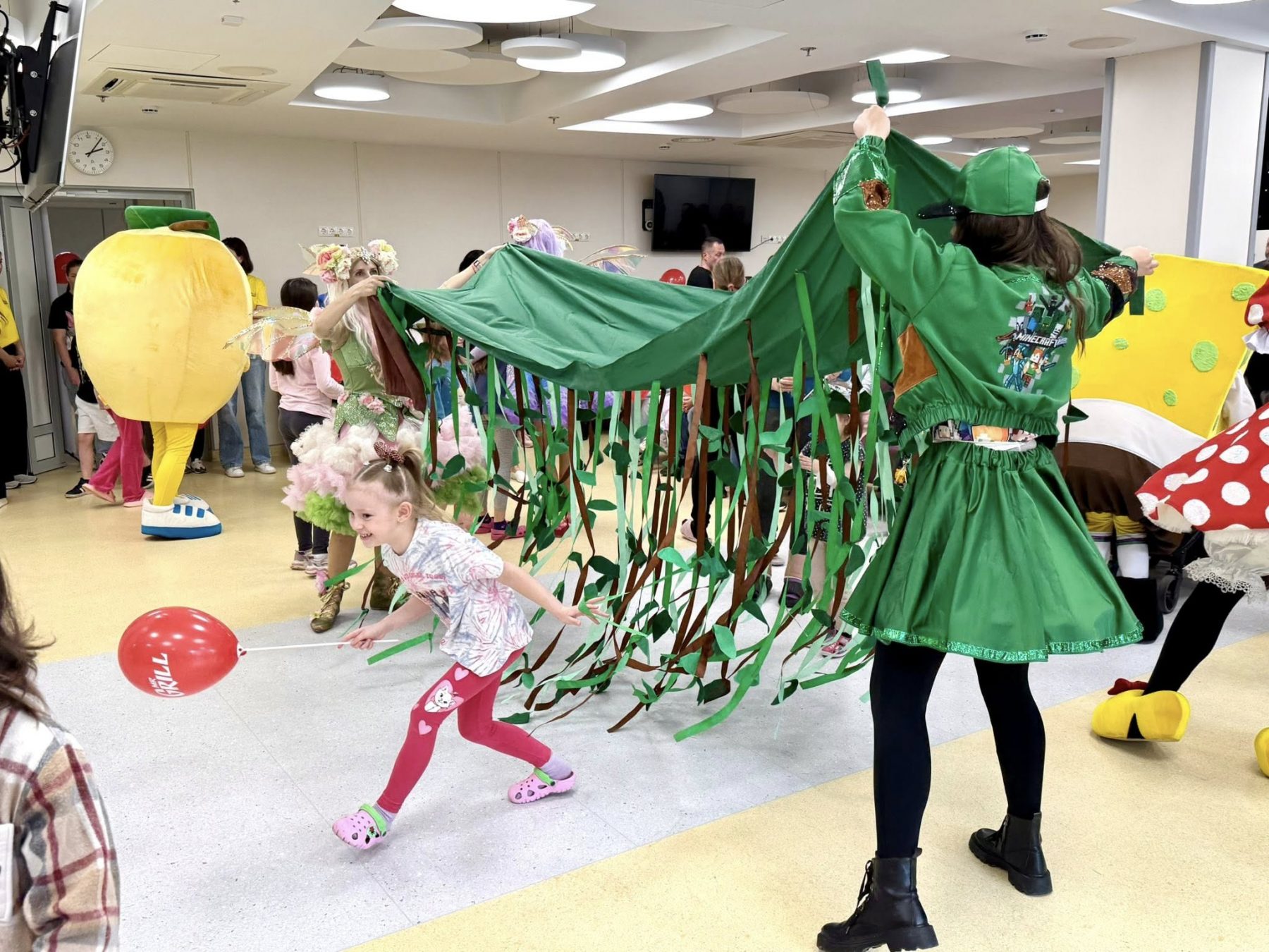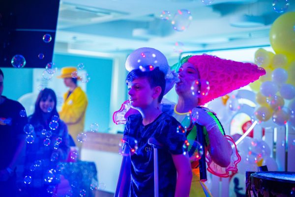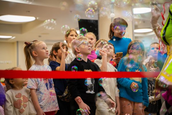 В актовій залі на дітей чекали феї й герої Minecraft з різними активностями. Протягом усієї події малеча танцювала, гралася з ростовими ляльками Міні Маус і Губкою Бобом, обирала кольори для своєї солодкої вати, перетворювалася на улюблених героїв завдяки аквагриму, робила тимчасові тату і захоплювалася крейзі-шоу з науковими експериментами та шоу мильних бульбашок. А ще — раділи подарункам і смачним сюрпризам. Premier FOOD Group надали дитячі бокси із чізбургерами й солодкими донатами, а казковий герой у ростовій ляльці «Хот-дог» розважав малечу та дарував повітряні кульки. ТМ «Живчик» подарували смачні напої. До того ж, казковий герой в ляльці «Живчик» теж долучився до святкового настрою.