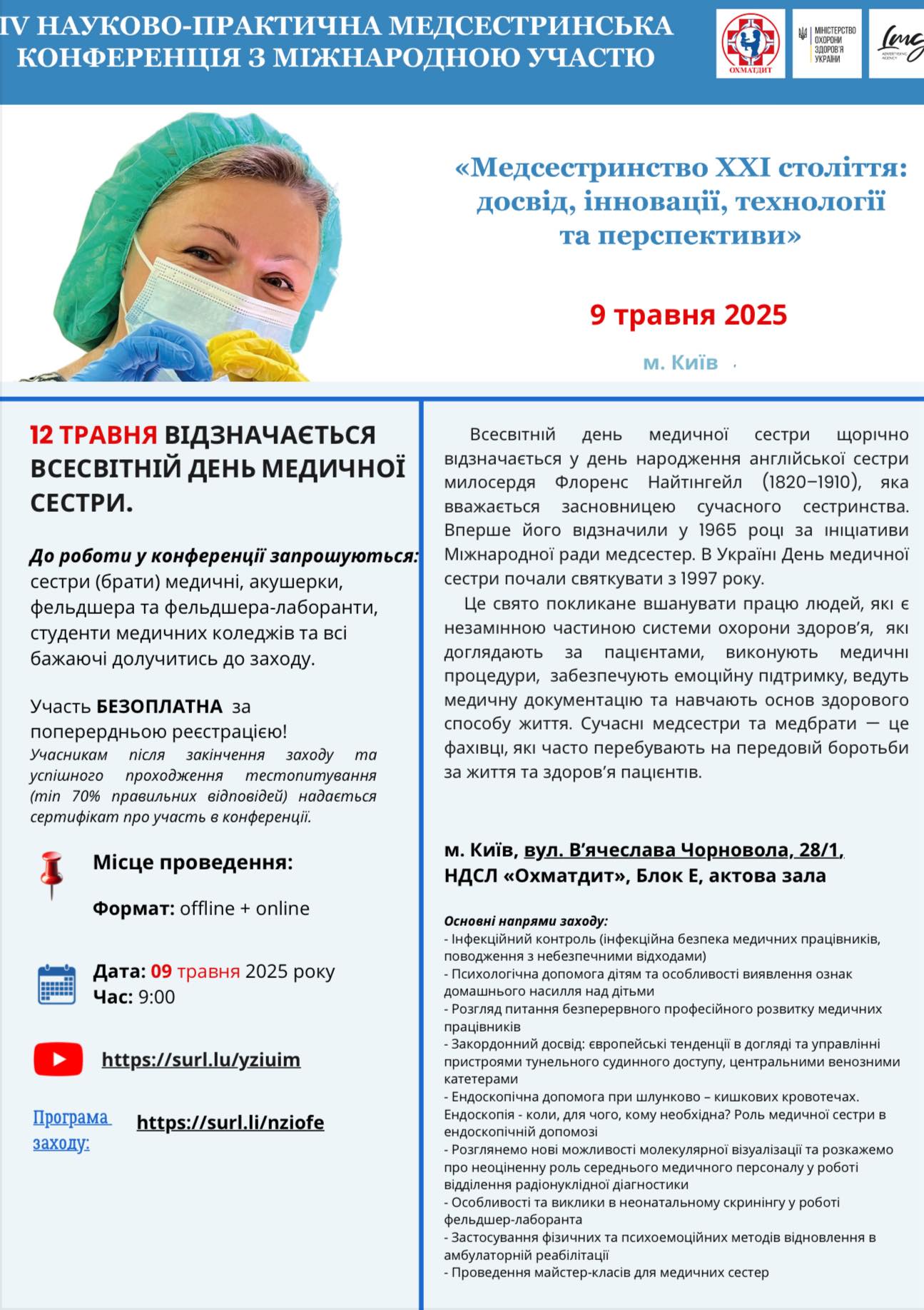 Запрошуємо Вас взяти участь у ІV Науково-практичній медсестринській конференції з міжнародною участю «Медсестринство XXI століття: досвід, інновації, технології та перспективи».