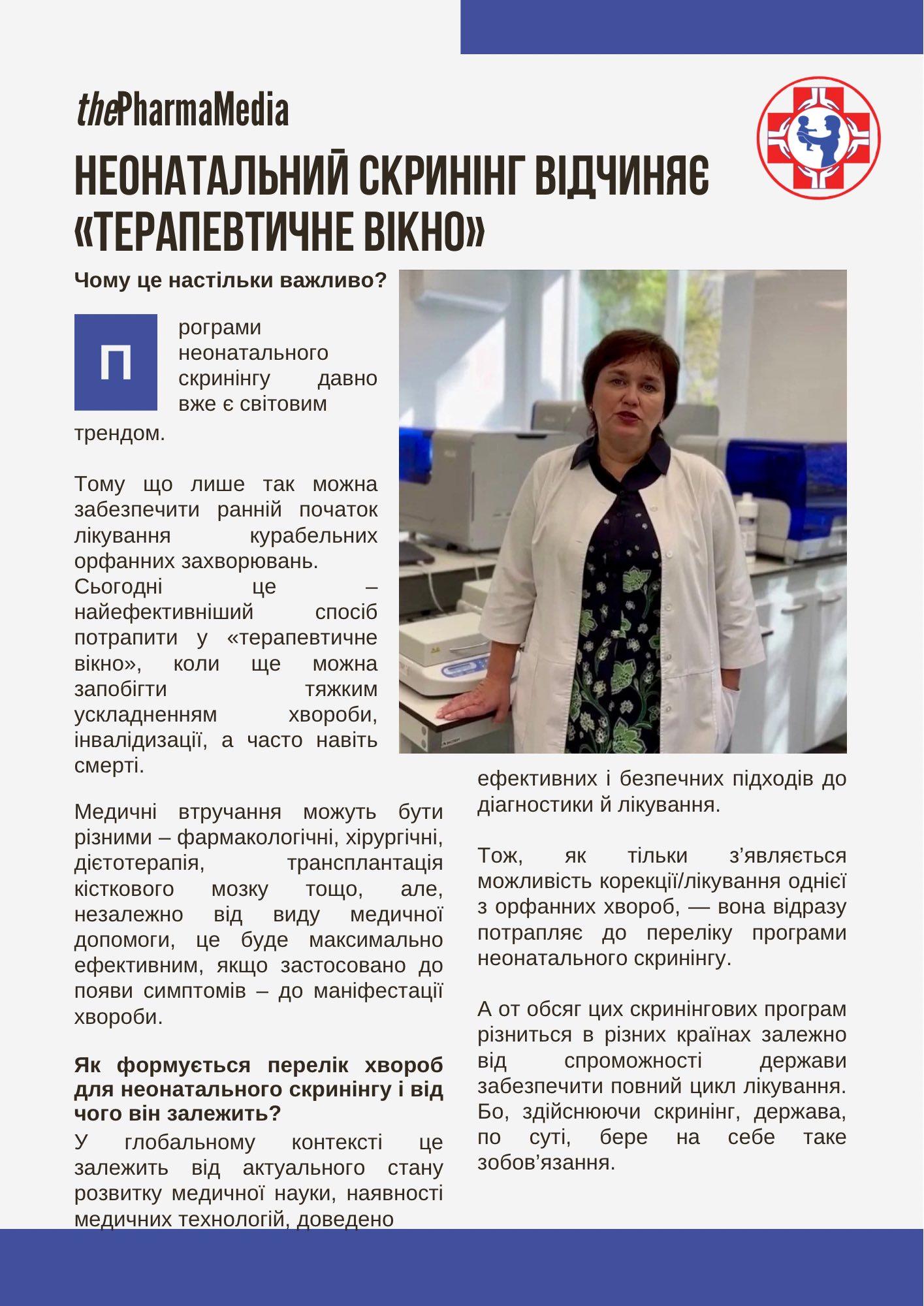 Наталія Вікторівна Ольхович, керівник Експертного та Регіонального центру неонатального скринінгу на базі НДСЛ «Охматдит» МОЗ України розповіла виданню The Pharma Media про те, що насправді стримує реальні можливості скринінгових програм, наскільки вони розвинені в Україні, і яку проблему у цій царині мріє розв’язати наша лікарка.