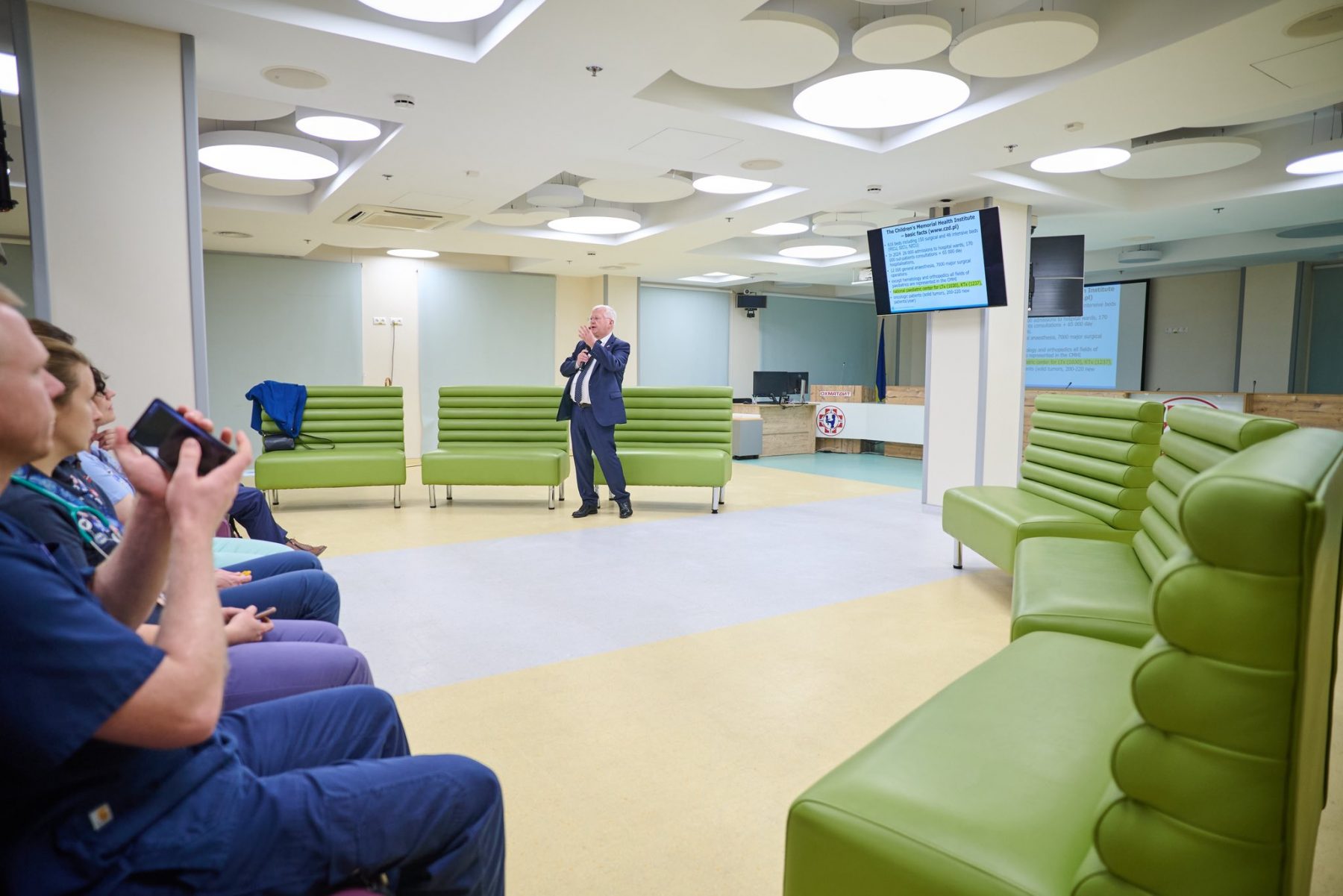 Директор Варшавської клініки Марек Мігдал разом із представниками нашої лікарні поділився досвідом партнерства, у межах якого команда трансплантологів проходила стажування в Польщі та застосовує отримані знання з трансплантації печінки й нирок у дітей.