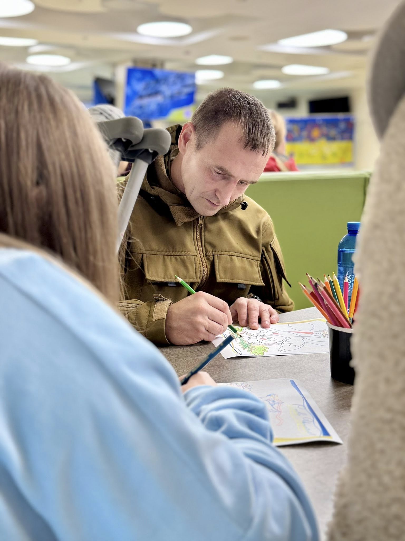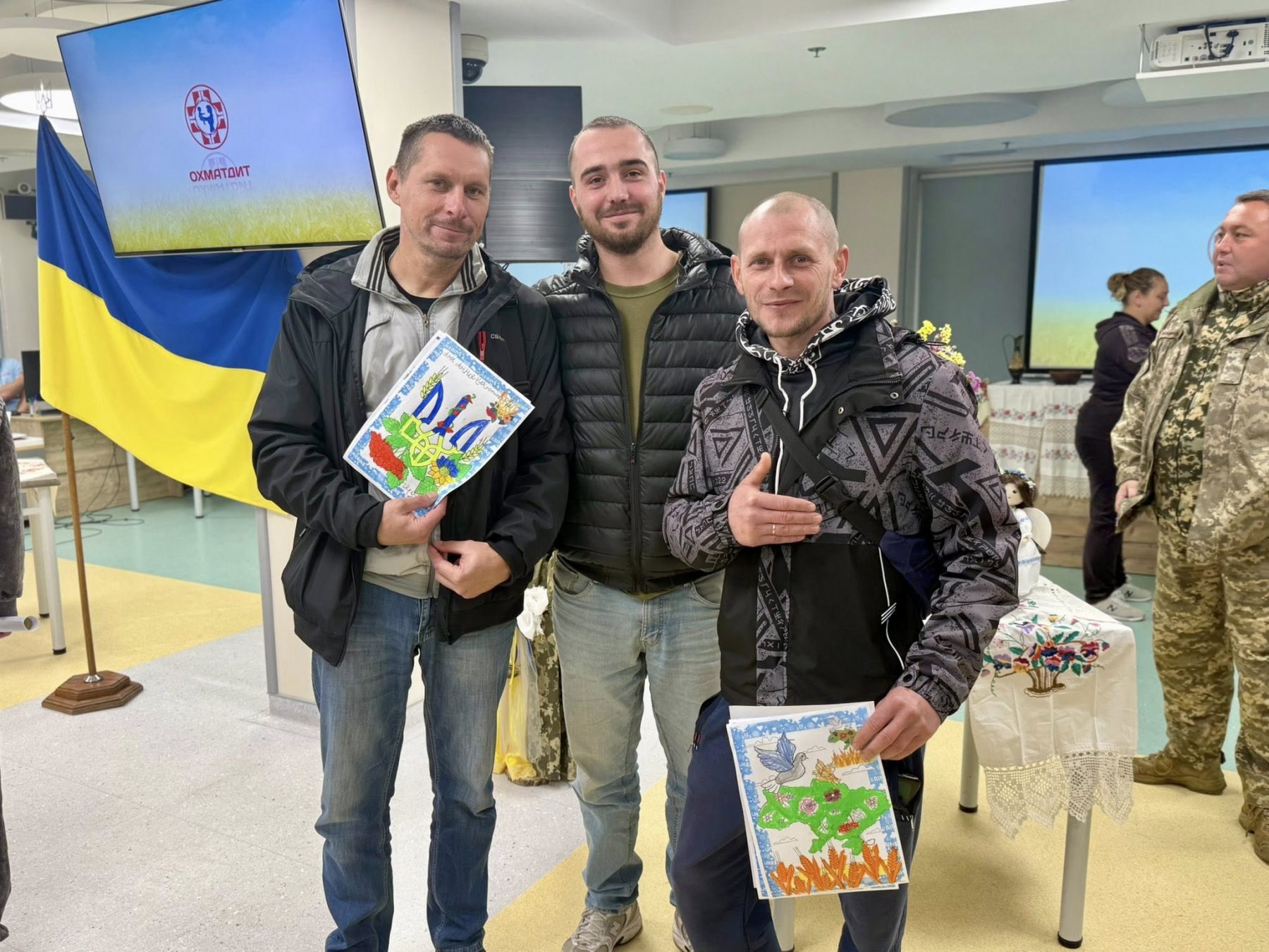 Сьогодні до Охматдиту завітали захисники, серед яких є колишні військовополонені. Наші маленькі пацієнти поспілкувалися з ними, розмалювали листівки і привітали воїнів зі святом. У цих дитячих малюнках — щирість, вдячність і віра в тих, хто боронить Україну. Це теплий знак підтримки для наших захисників і водночас урок для зростаючого покоління, яке цінує їхній подвиг.