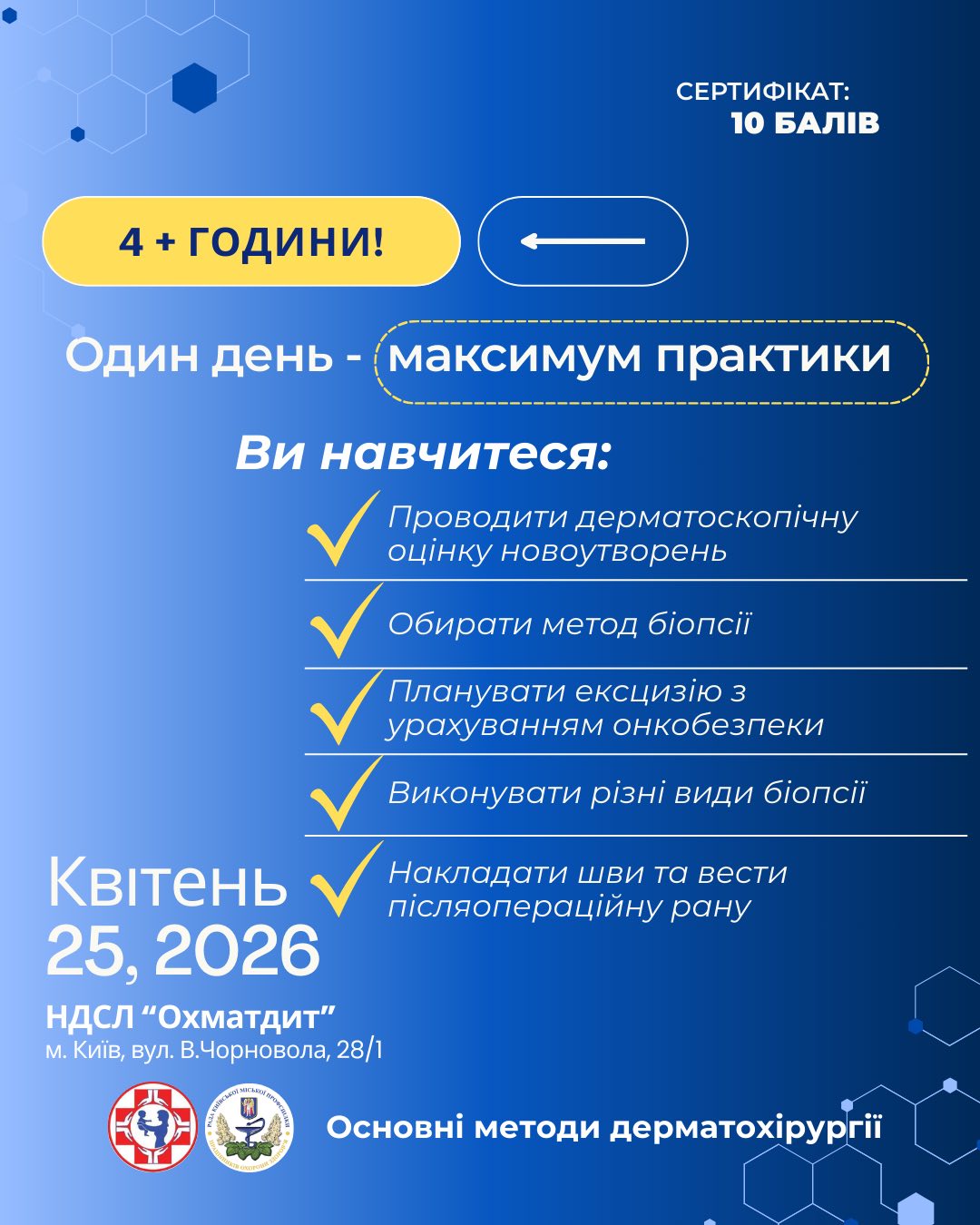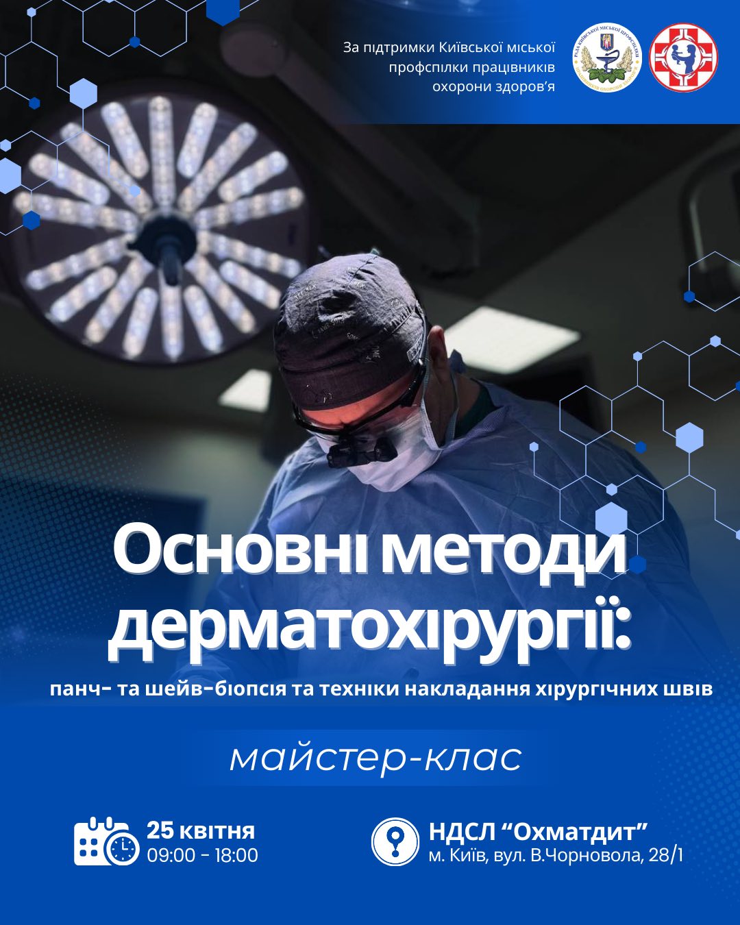 Запрошуємо лікарів на практичний майстер-клас з дерматології «Основні методи дерматохірургії: панч- та шейв-біопсія та техніки накладання хірургічних швів» (особиста участь).