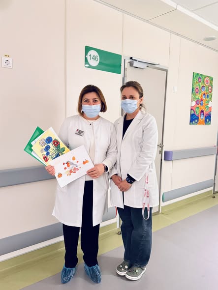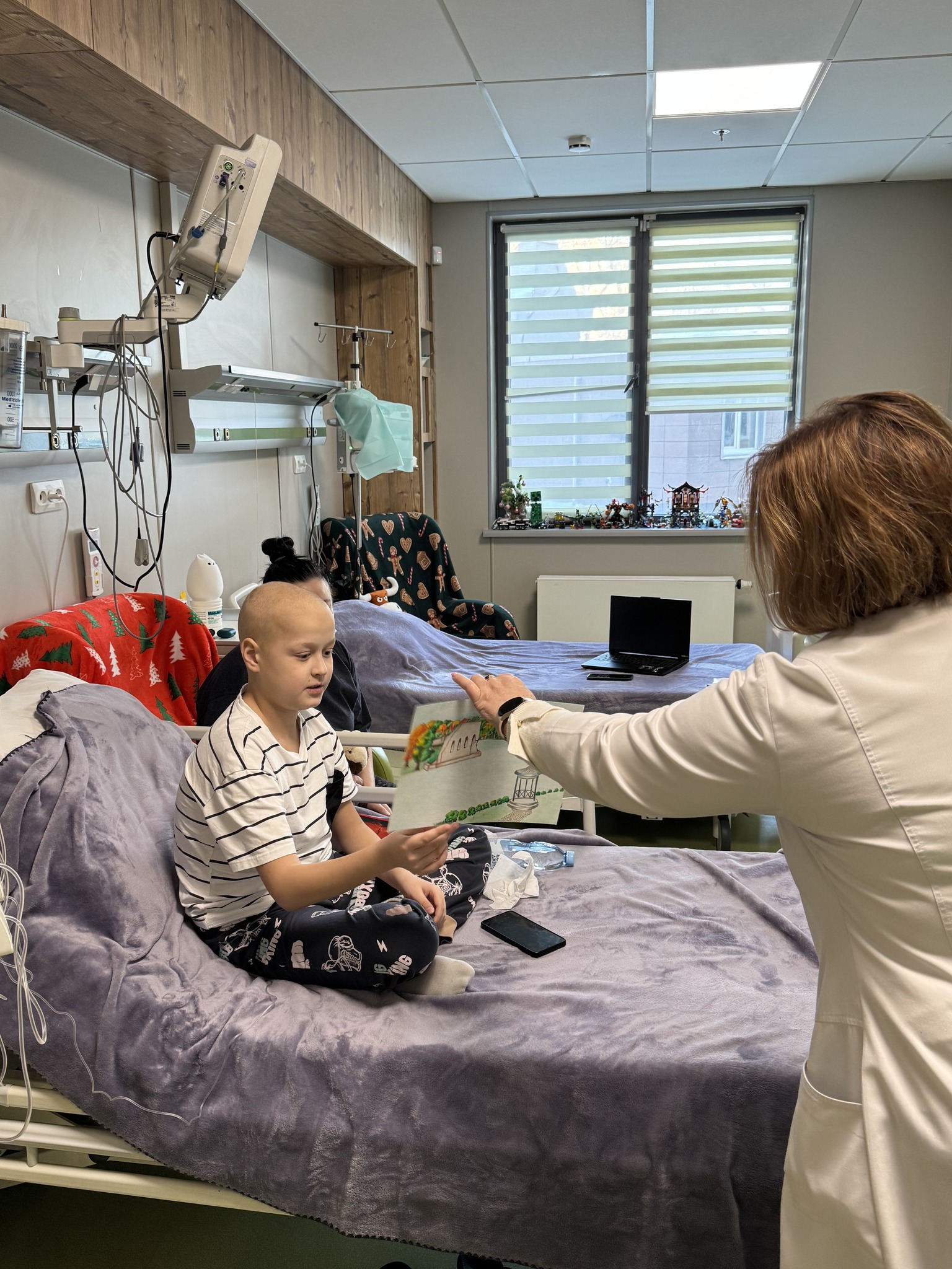 Їх передали маленьким пацієнтам Охматдиту з відділення хімієтерапії та онкогематологічних захворювань — таким самим сміливим воїнам, які проходять непростий шлях лікування. На звороті малюнків діти залишили контакти, щоб за бажанням можна було зателефонувати, поспілкуватися й підтримувати одне одного навіть на відстані.