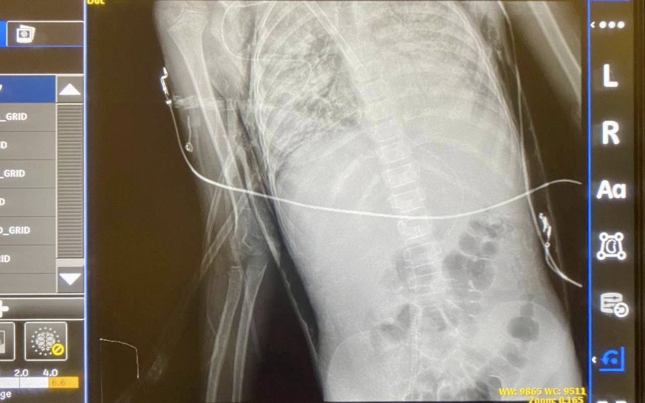 На фоні важкої двобічної пневмонії зберігався високий витік повітря з легень у плевральну порожнину (пневмоторакс), сформувалась підшкірна емфізема. Забезпечити організм достатнім рівнем киснем за допомогою стандартних методів майже не вдавалось, а транспортувати дитину було неможливо через стрімке зниження рівня кисню у крові та прогресування гемодинамічної нестабільності. У медиків залишалося зовсім мало часу. Тоді на допомогу прийшли спеціалісти НДСЛ “Охматдит”.