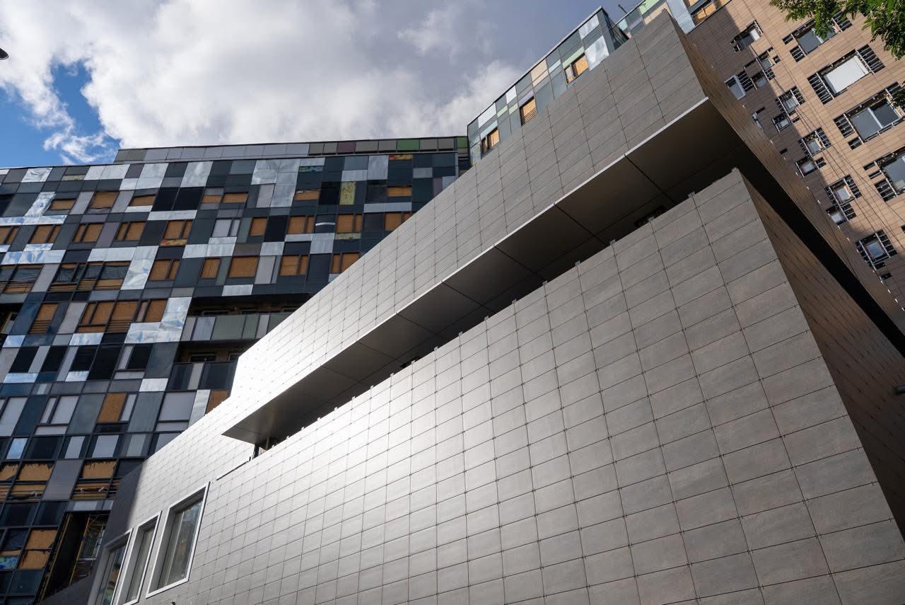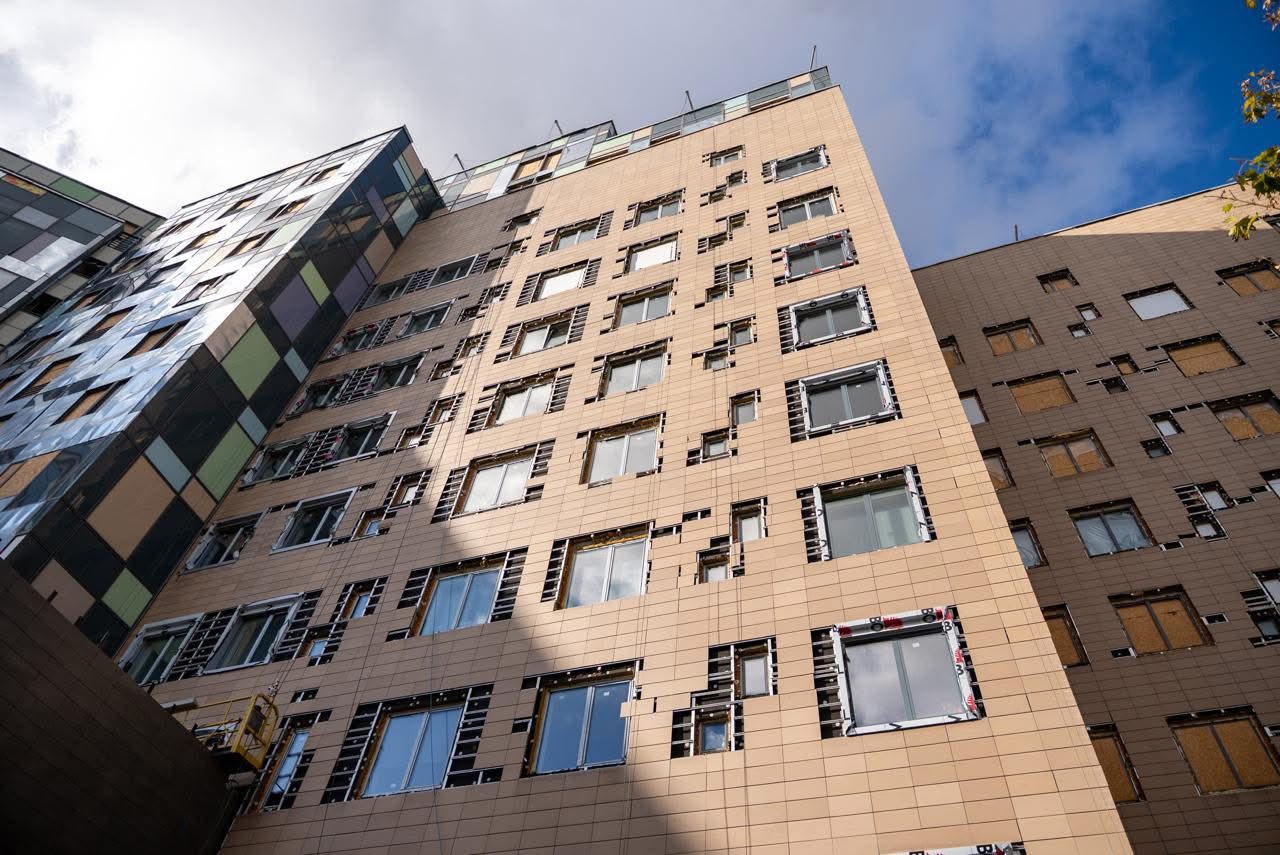 Зокрема, на фасадах блоків Б, В і Д завершено демонтаж старих навісних вентильованих конструкцій і розпочато монтаж нових (йдеться про кронштейни, утеплювач, каркаси та облицювання плиткою). Загалом роботи охопили площу понад 3 тисячі квадратних метрів.