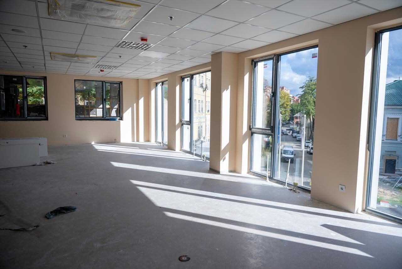 Виконано значний обсяг робіт як ззовні (фасади, вікна), так і всередині корпусу (оздоблення, інженерні мережі, освітлення).