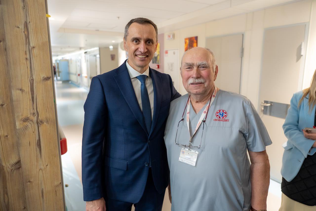 Сьогодні нашу лікарню відвідали Перша леді України Олена Зеленська та міністр охорони здоров’я Віктор Ляшко. Вони поспілкувалися з в.о. генерального директора Oleksandr Urin , керівником трансплант-команди Oleg Godik , лікарем-хірургом Олександром Гришиним та з пацієнтами, яким трансплантація в Охматдиті подарувала шанс на життя — серед них і Поліна.